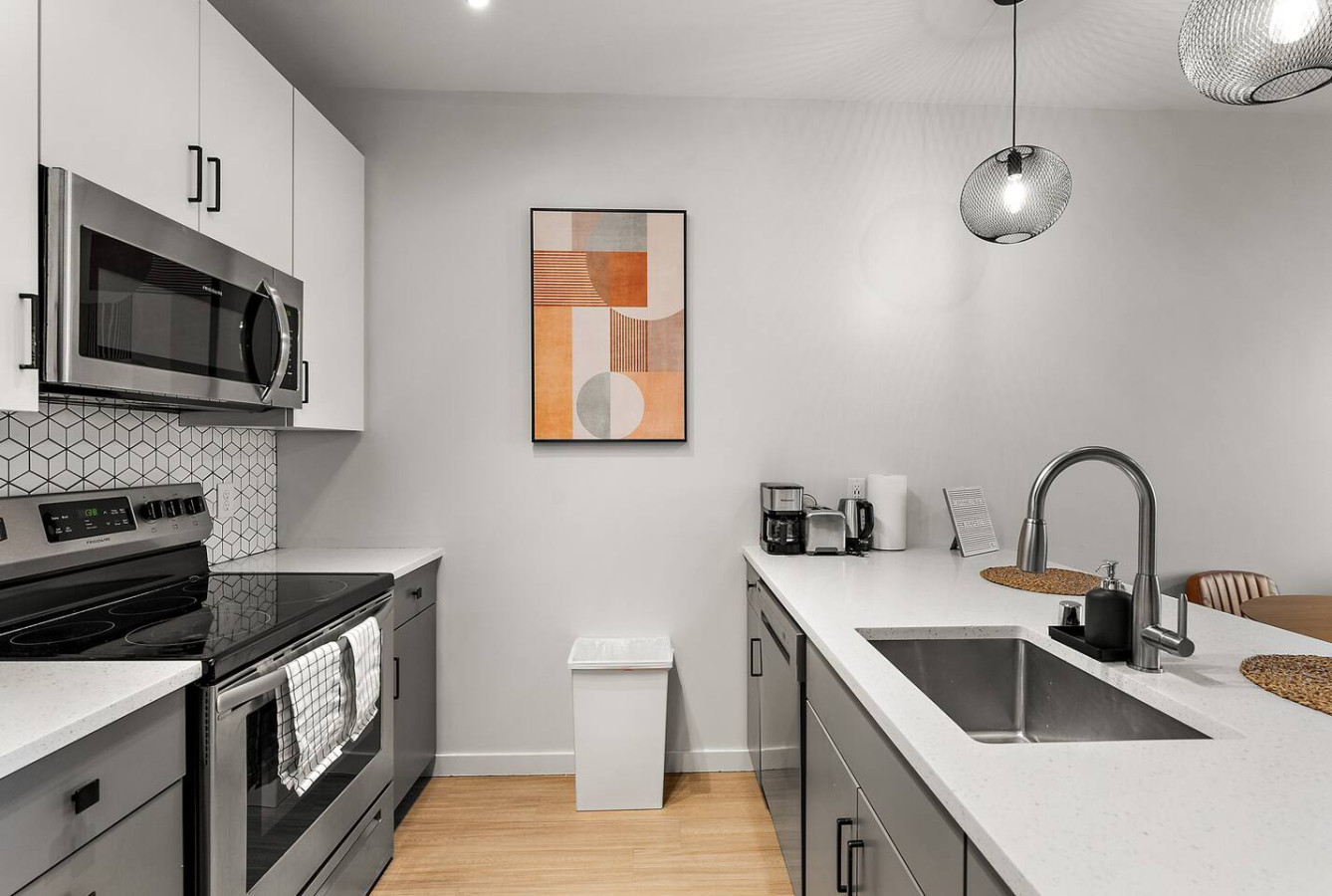 Step into your cozy city retreat, thoughtfully styled to blend comfort with convenience. Whether you're sipping coffee in the sunny living area or winding down after a night out, this one-bedroom suite gives you everything you need to feel right at home.